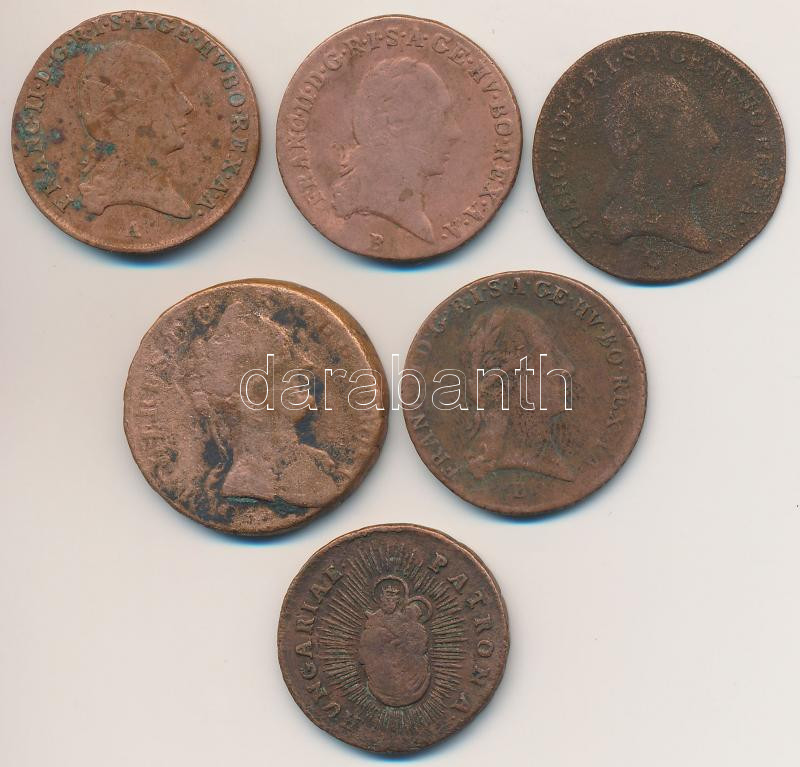 Beschreibung: Vegyes: 1763. Rézdénár "Mária Terézia" zárt korona + 1800A+B+C 1kr Cu (4x) + Csehország / Történelmi tartomány 1761P 1kr Cu "Mária Terézia" T:2-,3
