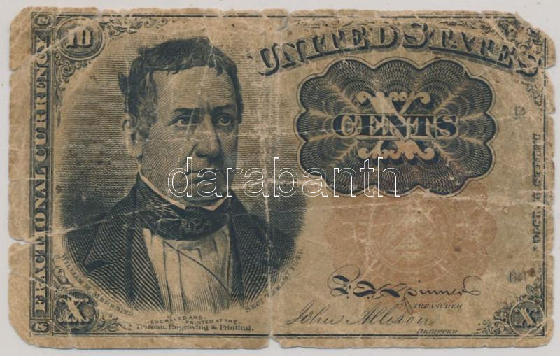 USA 1874. 10 Cents C:VG... https://www.darabanth.com/de/259-Fernauktion/259.0/Numismatik/Weltweit-Banknoten~100012/Amerikai-Egyesult-Allamok-1874-10c-TIIII-V--USA-1874-10-Cents-CVG-G--Krause-122~II1276037