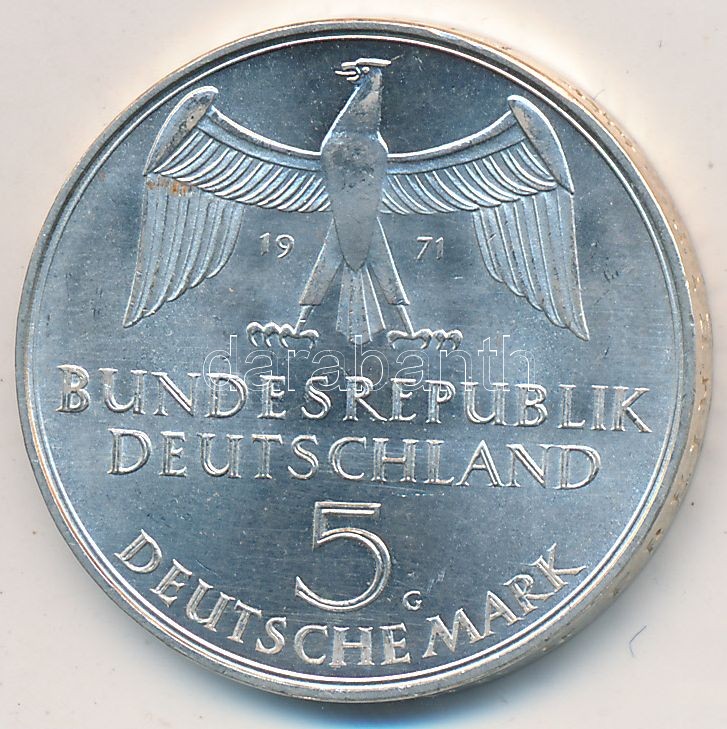 FRG 197... https://www.darabanth.com/de/259-Fernauktion/259.0/Numismatik/Weltweit-Munzen~100013/NSZK-1971G-5M-Ag-Nemet-Birodalom-megalakulasa-T2--FRG-1971G-5-Mark-Ag-Foundation-of-German-Rei~II1272951