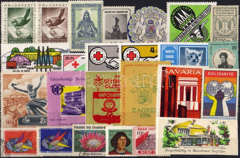 Beschreibung: 25 db magyar és külföldi levélzáró, segélybélyeg régi és modern