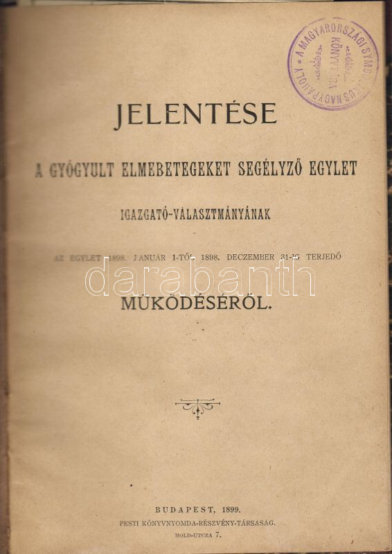 1899 A gyógyult elmebetegeket segélyező egylet igazgató választmányána... https://www.darabanth.com/de/26-Fernauktion/26.0/Andere-Sammelgebiete/~97/1899-A-gyogyult-elmebetegeket-segelyezo-egylet-igazgato-valasztmanyanak-mukodeserol~II49021