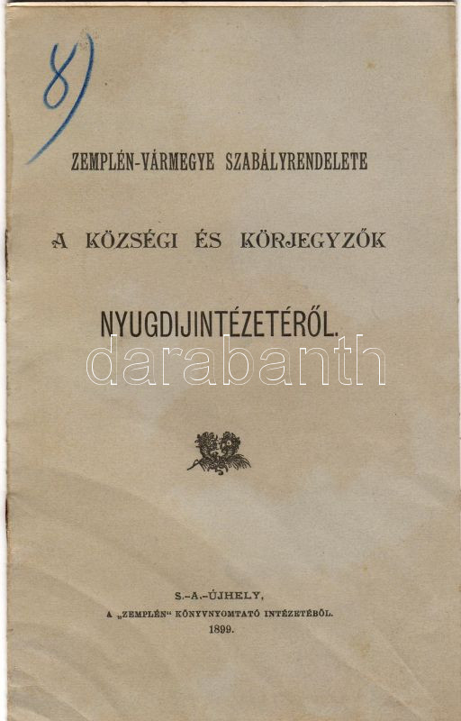 1899 Zemplén vármegye szabályrendelete a községi és körjegyzők nyugdíj... https://www.darabanth.com/de/26-Fernauktion/26.0/Andere-Sammelgebiete/~97/1899-Zemplen-varmegye-szabalyrendelete-a-kozsegi-es-korjegyzok-nyugdijintezeterol~II48902