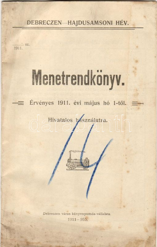 1911 Debreczen-Hajdúsámsoni helyi érdekű vasút menetrendkönyve https://www.darabanth.com/de/26-Fernauktion/26.0/Andere-Sammelgebiete/~97/1911-Debreczen-Hajdusamsoni-helyi-erdeku-vasut-menetrendkonyve~II48901