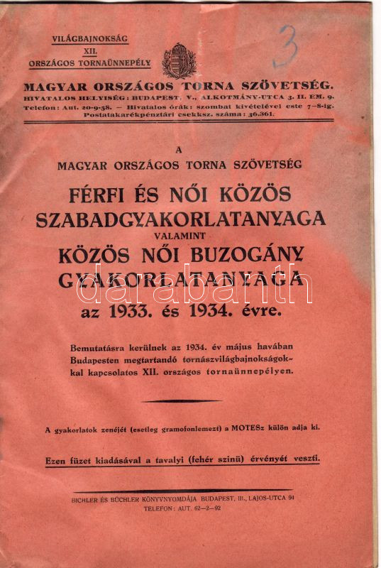 1933 A M. Orsz. Torna Szövetség férfi és női közös szabadgyakorlat-any... https://www.darabanth.com/de/26-Fernauktion/26.0/Andere-Sammelgebiete/~97/1933-A-M-Orsz-Torna-Szovetseg-ferfi-es-noi-kozos-szabadgyakorlat-anyaga-Bichler-es-Buchl~II48954