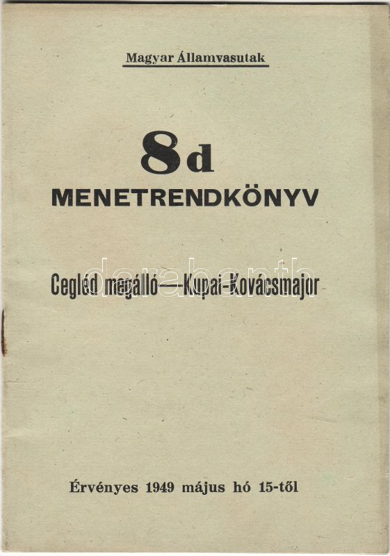 1949 Magyar Államvasutak 8d számú menetrendkönyv https://www.darabanth.com/de/26-Fernauktion/26.0/Andere-Sammelgebiete/~97/1949-Magyar-Allamvasutak-8d-szamu-menetrendkonyv~II49015