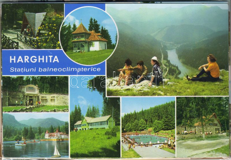 Beschreibung: 15db Nagyalakú modern városképes postatiszta képeslap, közte kép a Hargitáról, 1db használt