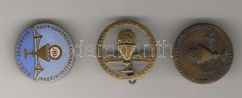 1938. "Eucharisztikus Kongresszus" 3 klf kitűző T:2 https://www.darabanth.com/de/26-Fernauktion/26.0/Numismatik/~107/1938-Eucharisztikus-Kongresszus-3-klf-kituzo-T2~II49655