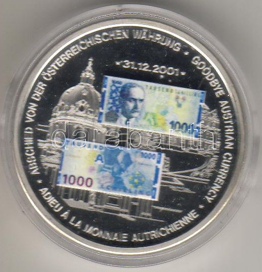 Beschreibung: Ausztria 2001. "Búcsú a schillingtől" dekoratív emlékérem díszdobozban tanúsítvánnyal, ezüstözve szines felülnyomással T:PP