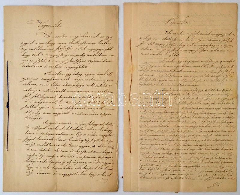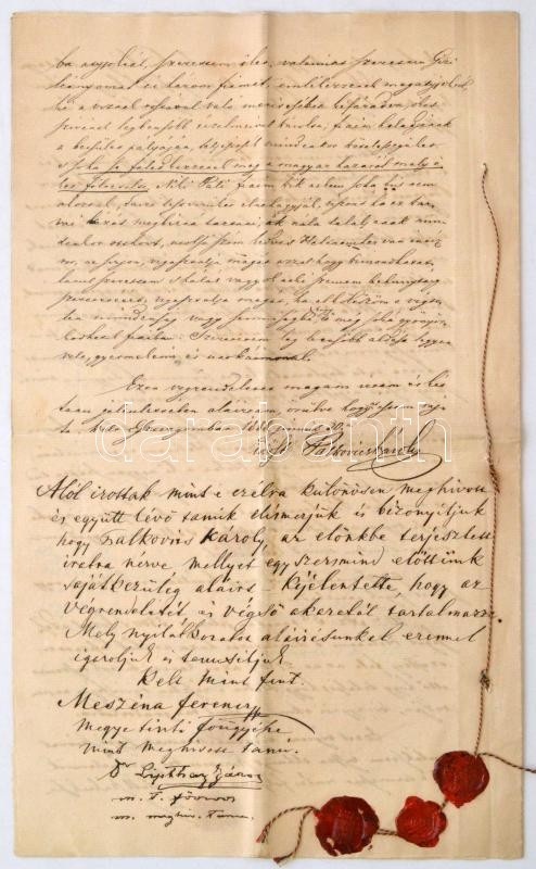 1888-1892 Palkovics Károly (1816-1897) Esztergom polgármestere, országgyűlési képviselő, 1848-1849-es kormánybiztos 2 db kézzel írt, hitelesített végrendelete, érdekes tartalommal
