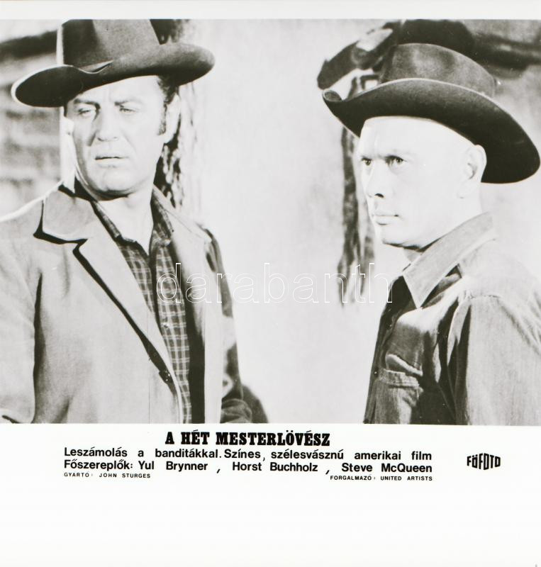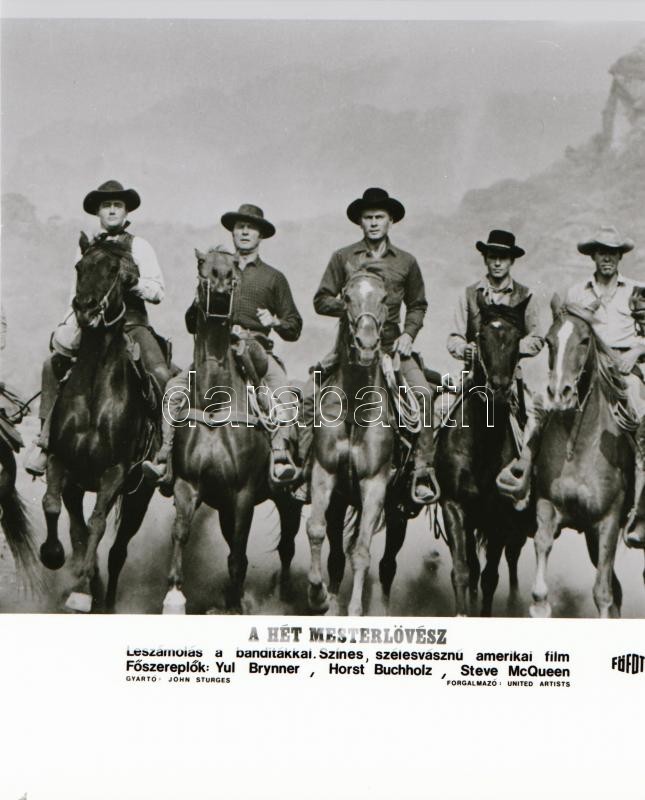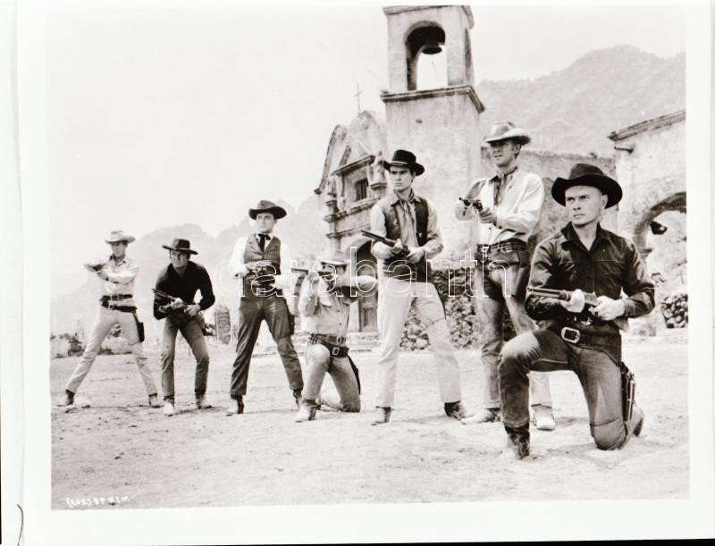 ,,Hét mesterlövész" című film állóképei, 20 db negatív, ezekről készültek a mozik előcsarnokában kiállított, új filmek reklámozására szolgáló fényképek, 4x7 cm
