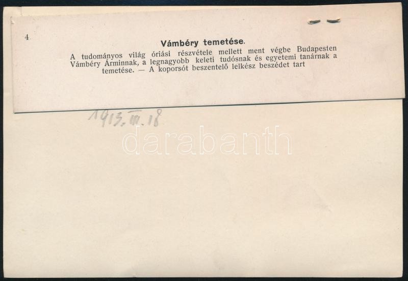 1913 Vámbéry Ármin (1832-1913) orientalista temetése Korabeli sajtófot... https://www.darabanth.com/de/26-Gross-Auktion/26.1/Andere-Sammelgebiete/Foto~10312/1913-Vambery-Armin-1832-1913-orientalista-temetese-Korabeli-sajtofoto-hozzatuzott-szove~II1492261