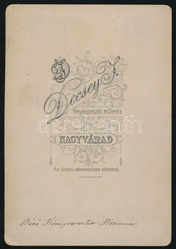 Báró kisszántói Kőnigswarter Herman (1864-1915) keményhátú fényképe. ... https://www.darabanth.com/de/26-Gross-Auktion/26.1/Andere-Sammelgebiete/Foto~10312/Baro-kisszantoi-Konigswarter-Herman-1864-1915-kemenyhatu-fenykepe-Decsey-Janos-Nagyv~II1489674