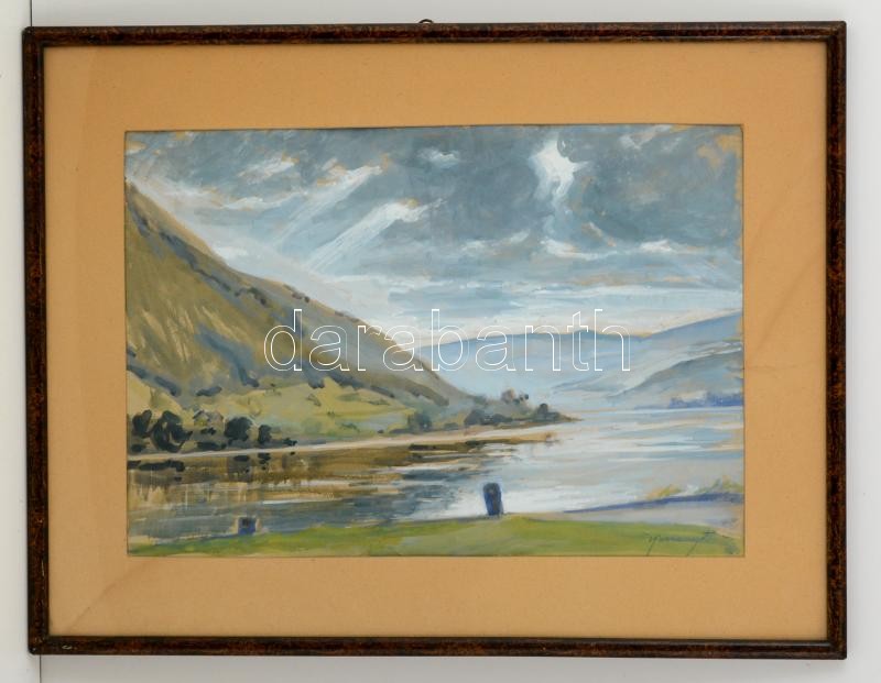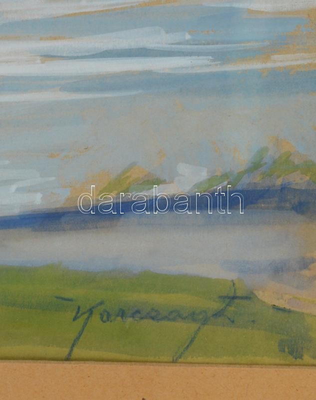 Beschreibung: Karczag Zoltán (1881-1944): Dunakanyar. Akvarell, papír, jelzett, üvegezett keretben, 35×50 cm
