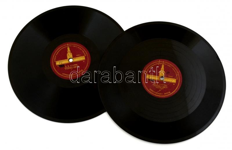 1945 Sztálin hangja, 1945 szeptember 2-án elmondott beszéde két hanglemezen. A papírtok megviselt. /
