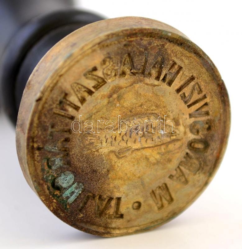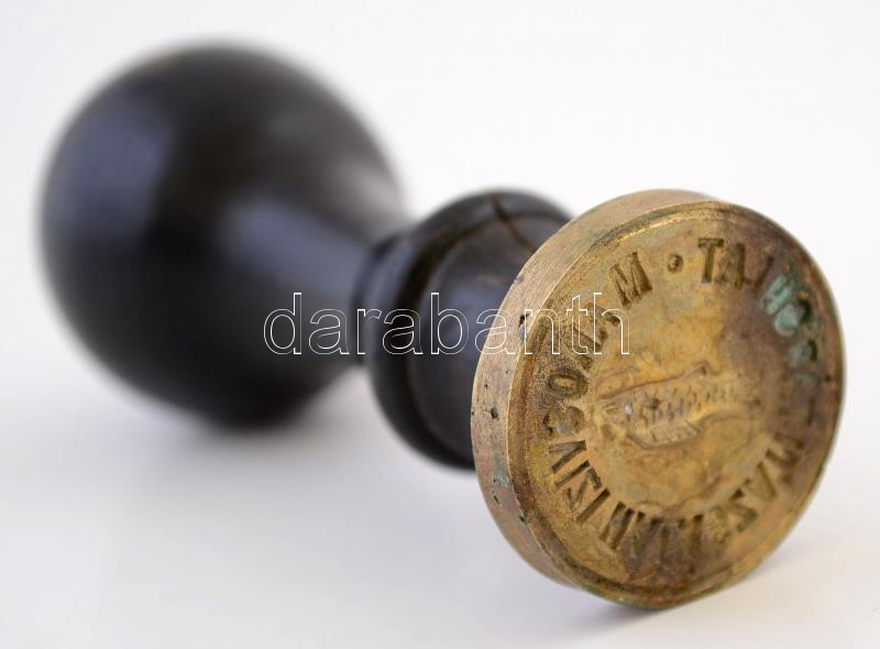 cca 1900 Maros-vízi Halászati Társulat réz pecsétnyomója, fa fogóval, m:7 cm /