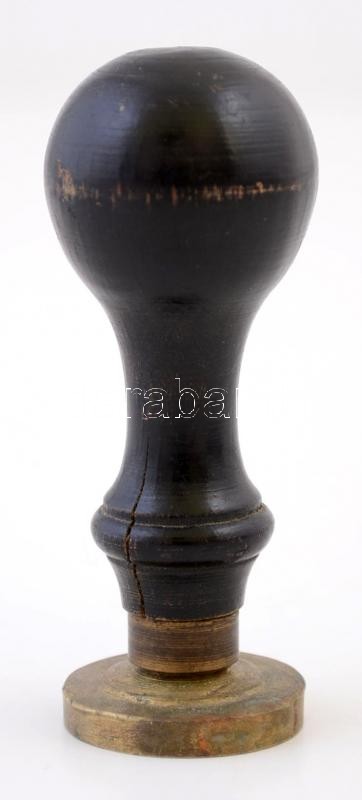 cca 1900 Copper typarium of the Fishing Company of RIver Maros, with wooden grip, h: 7 cm