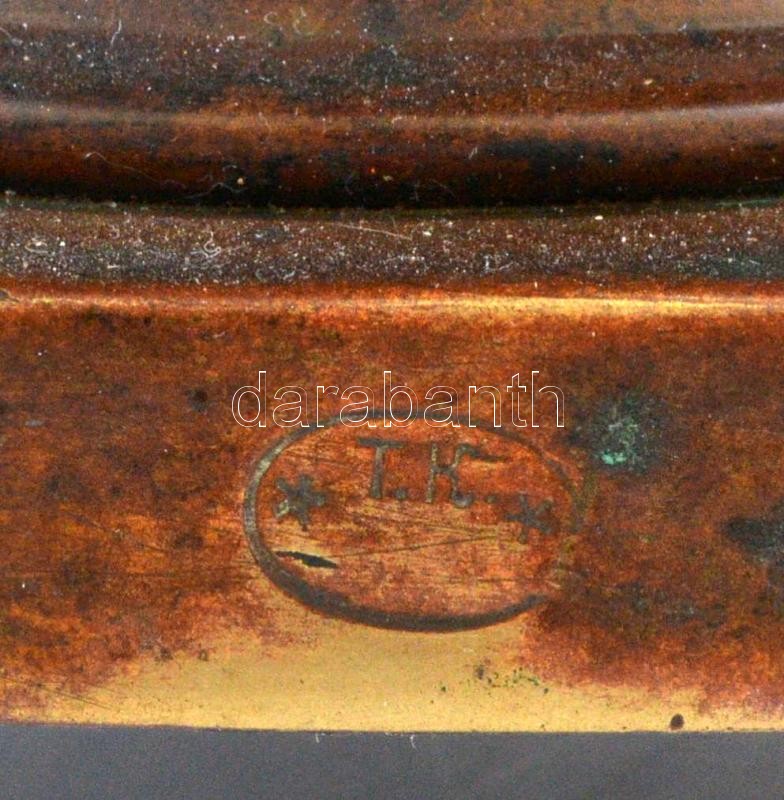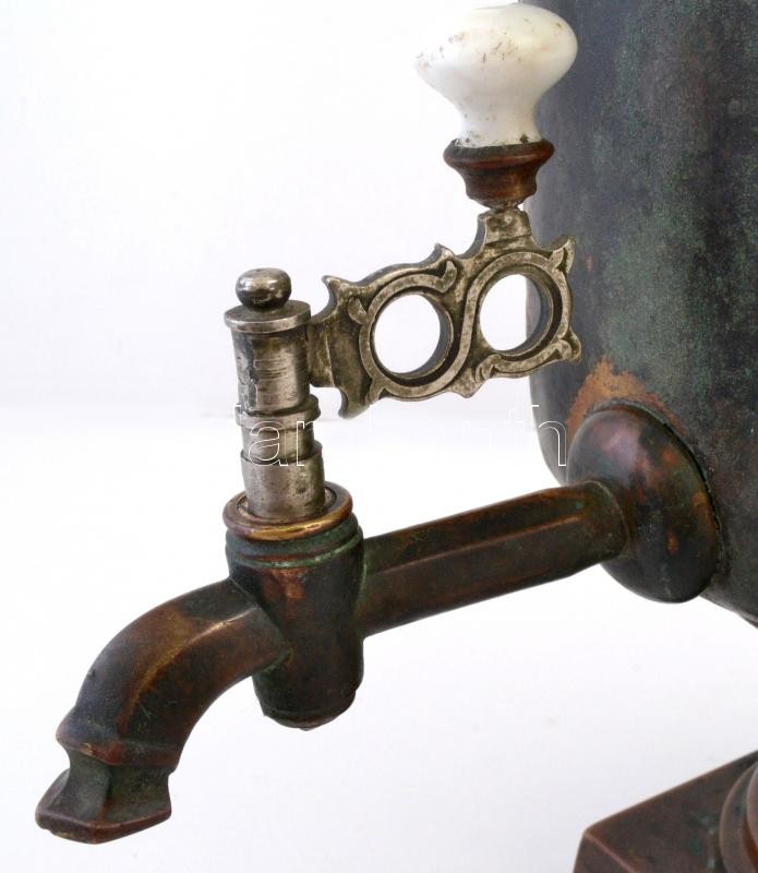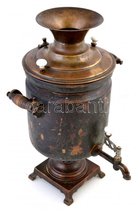 cca 1930 Soviet copper samovar from Kolchunigovo, with hallmark (Tsvetmet) with porcelain handles, used, h: 45 cm