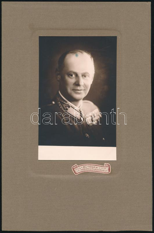 1943 vitéz Kisbarnaki Farkas Ferenc (1892-1980) katonatiszt, cserkészvezető fotója, Till Műterem (Hódmezővásárhely), kartonlapra ragasztva, 13x8 cm./