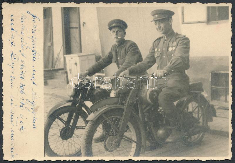 1945 Szovjet katonák zsákmányolt BMW motorokon, fotólap, 8x12 cm. / 19... https://www.darabanth.com/de/26-Gross-Auktion/26.1/Andere-Sammelgebiete/Militaria~10318/1945-Szovjet-katonak-zsakmanyolt-BMW-motorokon-fotolap-8x12-cm-1945-Soviet-soldiers-on-loot~II1490879