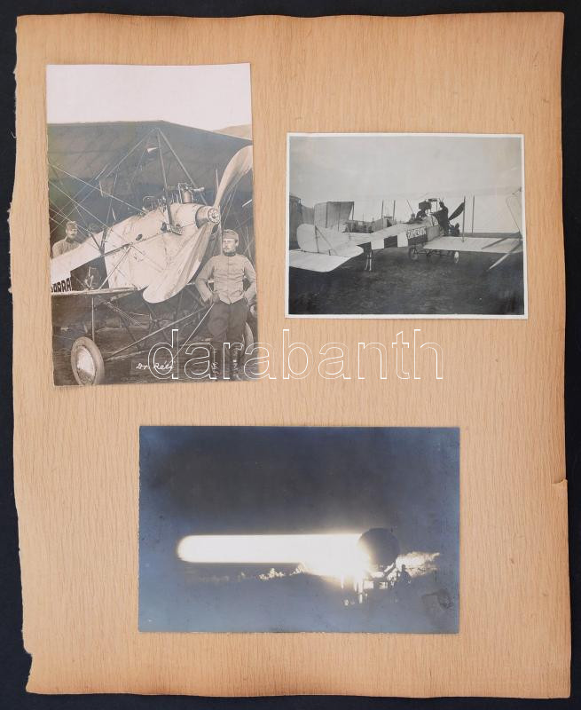 Magyar vadászrepülők az I. világháborúban. dr. Réti és Bömerang nevű gépe. Két jó fotólap, valamint éjszakai fényszórózás fotója. Albumlapon. /