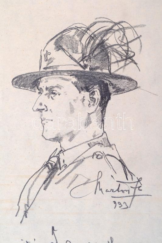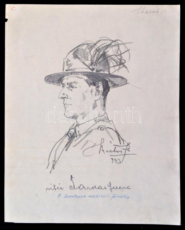 Beschreibung: Márton Ferenc (1884-1940): 1933 Jamboree, Vitéz Farkas Ferenc (1892-1980) a Jamboree vezérkari fönöke. Ceruza, papír, jelzett, 21×17 cm