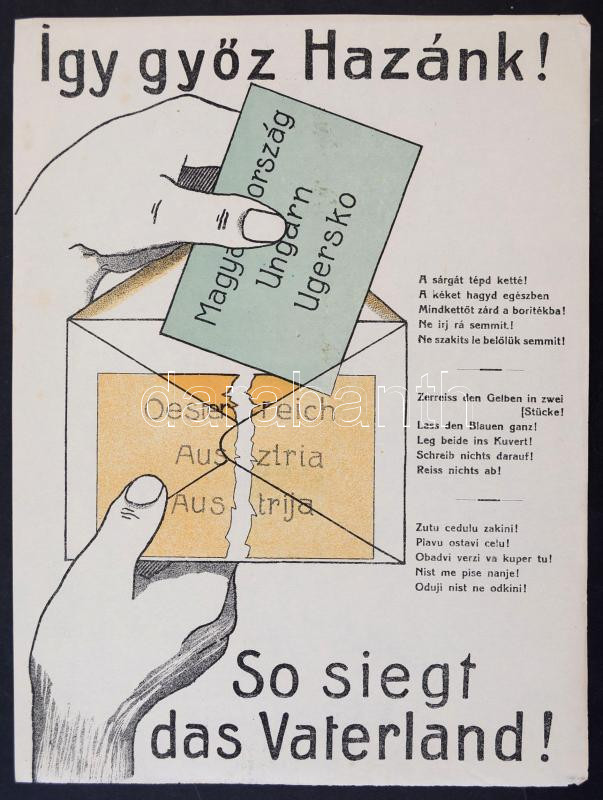 1921 "Így győz Hazánk!" színes propaganda plakát a Soproni népszavazás... https://www.darabanth.com/de/26-Gross-Auktion/26.1/Andere-Sammelgebiete/Poster~10276/1921-Igy-gyoz-Hazank-szines-propaganda-plakat-a-Soproni-nepszavazas-idejebol-31C39723-cm~II1484483