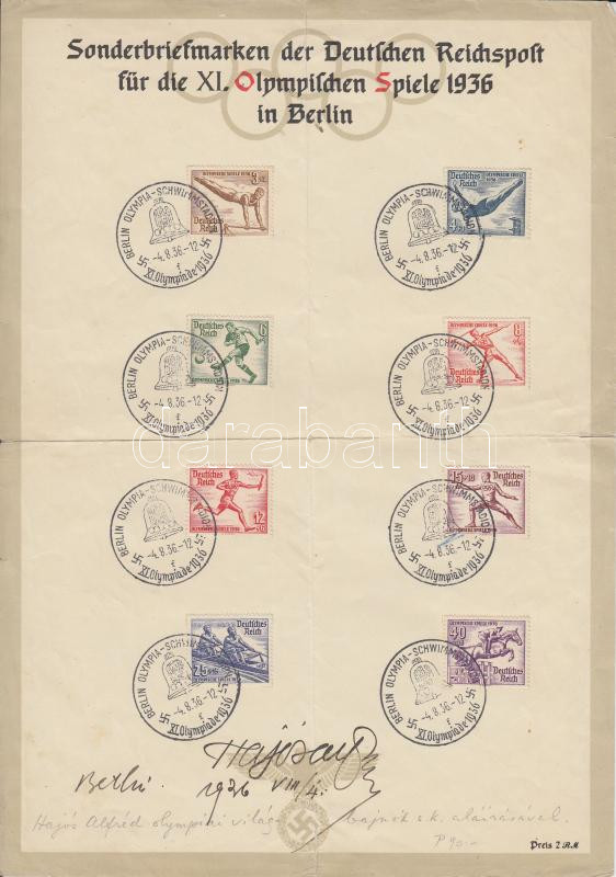 1936 A Berilni olimpia emléklapja rajta az olimpiára kiadott bélyegekk... https://www.darabanth.com/de/26-Gross-Auktion/26.1/Andere-Sammelgebiete/Signatur~10266/1936-A-Berilni-olimpia-emleklapja-rajta-az-olimpiara-kiadott-belyegekkel-es-Hajos-Alfred-elso~II1428997