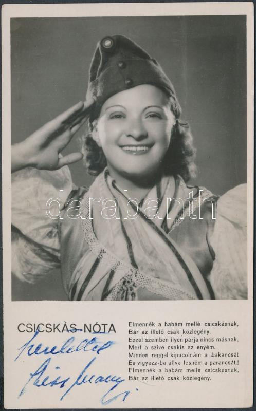 1942 Kiss Manyi (1911-1971) színésznő aláírása őt ábrázoló fotólapon, ... https://www.darabanth.com/de/26-Gross-Auktion/26.1/Andere-Sammelgebiete/Signatur~10266/1942-Kiss-Manyi-1911-1971-szineszno-alairasa-ot-abrazolo-fotolapon-13x8-cm~II1490644