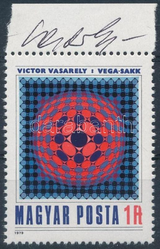 1979 Victor Vasarely Vega sakk c. képét ábrázoló bélyeg a művész saját... https://www.darabanth.com/de/26-Gross-Auktion/26.1/Andere-Sammelgebiete/Signatur~10266/1979-Victor-Vasarely-Vega-sakk-c-kepet-abrazolo-belyeg-a-muvesz-sajat-kezu-alairasava~II1492257