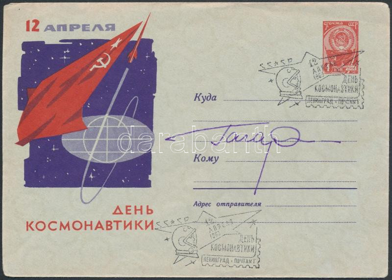 Jurij Alekszejevics Gagarin (1934-1968) szovjet űrhajós aláírása emlékborítékon / Signature of Yuriy Alekseyevich Gagarin (1934-1968) Soviet astronaut on envelope