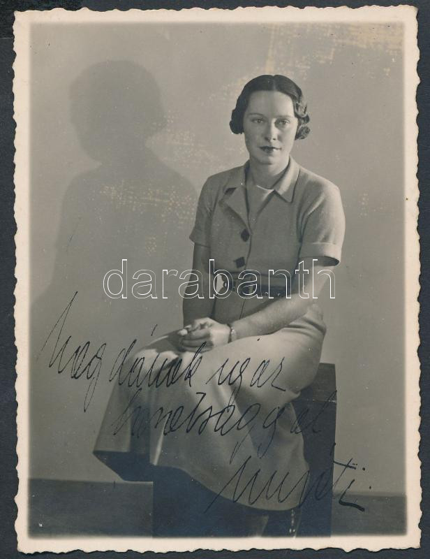 Beschreibung: Muráti Lili (1912-2003) színésznő ajánlása és aláírása őt ábrázoló fotón