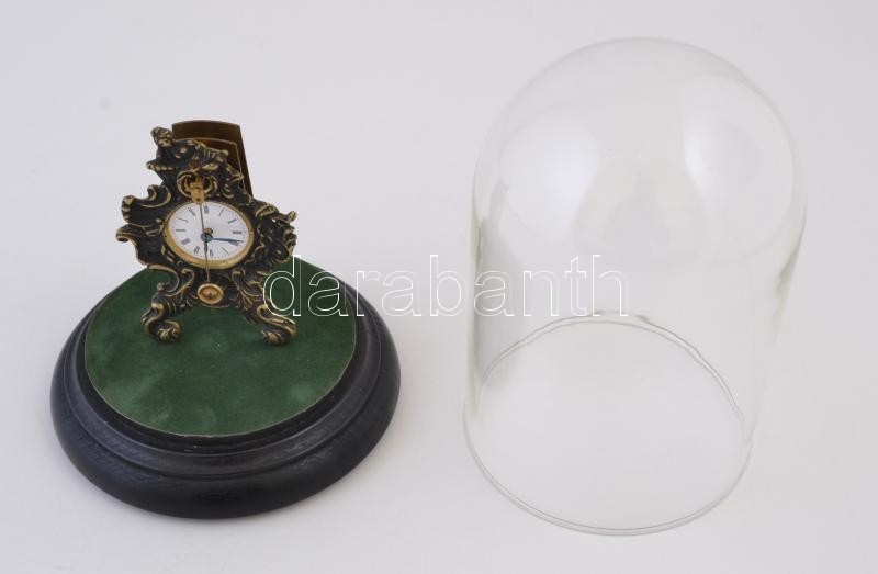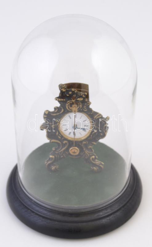 XX. századi zappler óra búra alatt, felhúzókulccsal, hibátlanul működő szerkezettel / 20th century zappler clock under glass with winding key. Works well. 19 cm