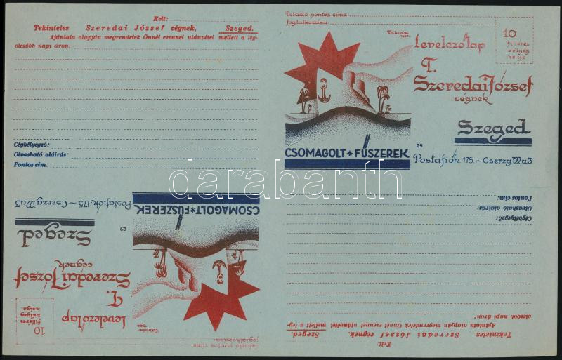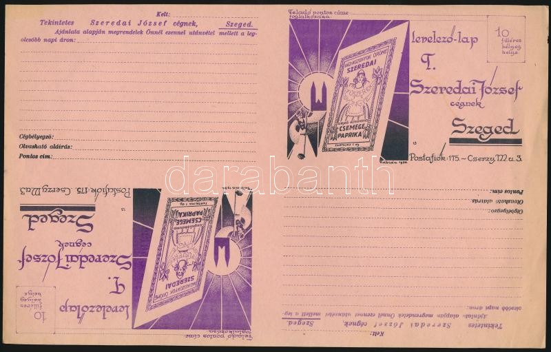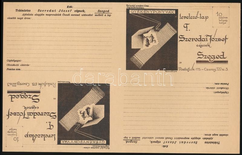 cca 1920 6 db előre címzett felvágatlan reklám levelezőlap Szeredai Jó... https://www.darabanth.com/de/26-Gross-Auktion/26.1/Andere-Sammelgebiete/Werbungen~10268/cca-1920-6-db-elore-cimzett-felvagatlan-reklam-levelezolap-Szeredai-Jozsef-szegedi-kereskedon~II1487153