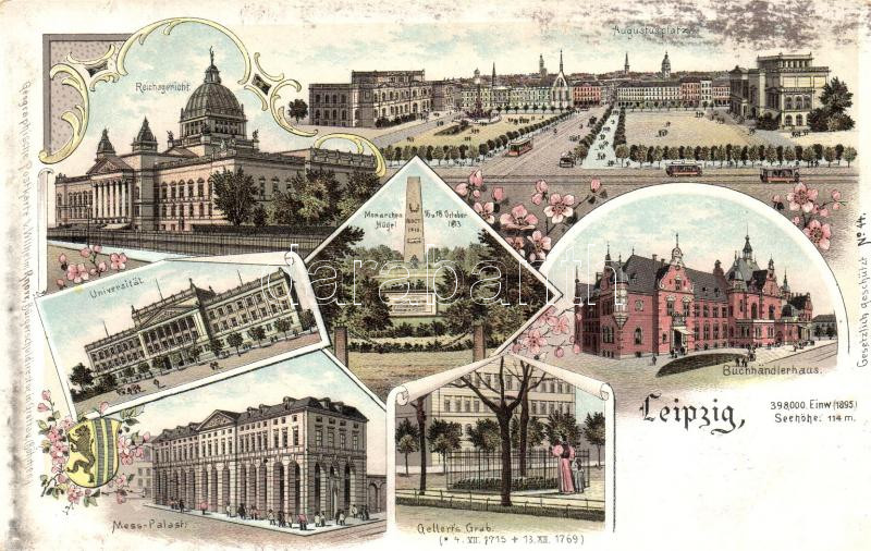 Beschreibung: Leipzig. Geographische Postkarte v. Wilhelm Knorr No. 44. Art Nouveau litho