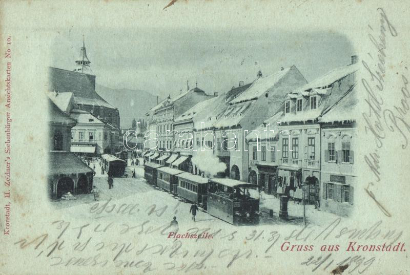 Beschreibung: 1899 Brassó, Brasov, Kronstadt; Lensor, városi vasút télen / Flachszeile / street, urban railway, winter time (EK)