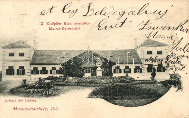 Maroskeresztúr, Cristesti; Z. Knöpfler Elek nyaralója. Holbach Ede kia... https://www.darabanth.com/de/26-Gross-Auktion/26.1/Ansichtskarten/Siebenburgen~10159/Maroskeresztur-Cristesti-Z-Knopfler-Elek-nyaraloja-Holbach-Ede-kiadasa--villa-EK~II1484697