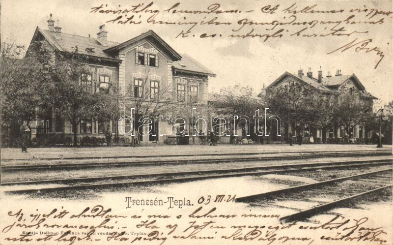 Hőlak, Trencséntepla, Trencianska Teplá; vasútállomás. Dallman Ferenc ... https://www.darabanth.com/de/26-Gross-Auktion/26.1/Ansichtskarten/Slowakei~10161/Holak-Trencsentepla-Trencianska-Tepla-vasutallomas-Dallman-Ferenc-vasuti-vendeglos-kiad~II1481841