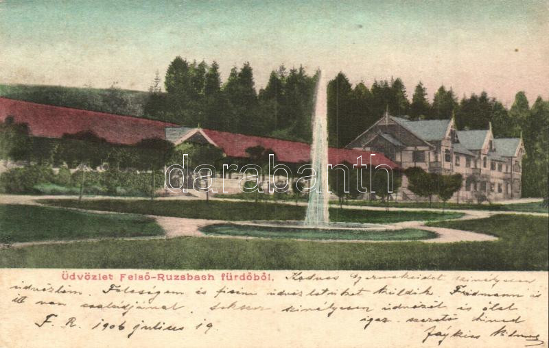Ruzsbach-fürdő, Kupele Ruzbachy; Felső-Ruzsbach, szökőkút / fountain https://www.darabanth.com/de/26-Gross-Auktion/26.1/Ansichtskarten/Slowakei~10161/Ruzsbach-furdo-Kupele-Ruzbachy-Felso-Ruzsbach-szokokut-fountain~II1484561