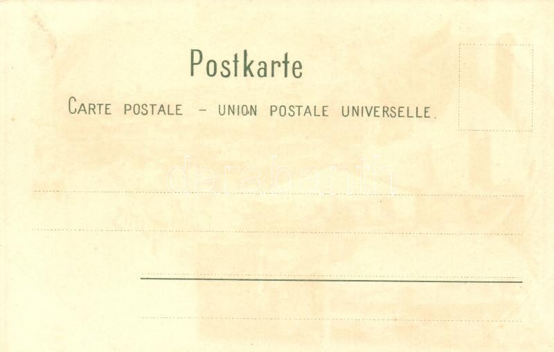 Beschreibung: Tunis; Kattedrale in Karthago, Le Bardo, La Goulette, Bazar. Geographische Postkarte v. Wilhelm Knorr No. 170. floral litho