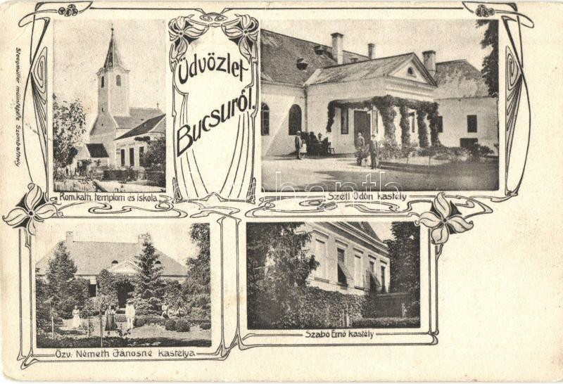Beschreibung: Bucsu, Római katolikus templom és iskola, Széll Ödön, Özv. Németh Jánosné és Szabó Ernő kastélya, Art Nouveau; kiadja Steegmüller (EK)