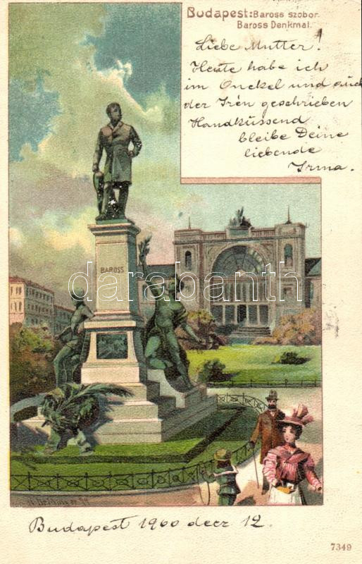 Budapest VII. Baross szobor Keleti pályaudvarral, litho s: Drinman (?) https://www.darabanth.com/de/26-Gross-Auktion/26.1/Ansichtskarten/Ungarn~10158/Budapest-VII-Baross-szobor-Keleti-palyaudvarral-litho-s-Drinman-~II1486660