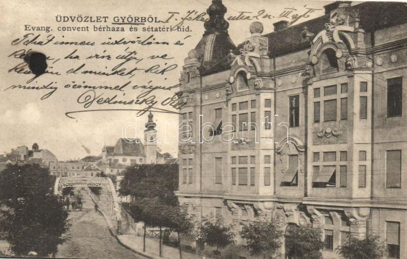Győr, Evangélikus Konvent bérháza, Sétatéri híd. kiadja Nitsmann Józse... https://www.darabanth.com/de/26-Gross-Auktion/26.1/Ansichtskarten/Ungarn~10158/Gyor-Evangelikus-Konvent-berhaza-Setateri-hid-kiadja-Nitsmann-Jozsef~II1475320