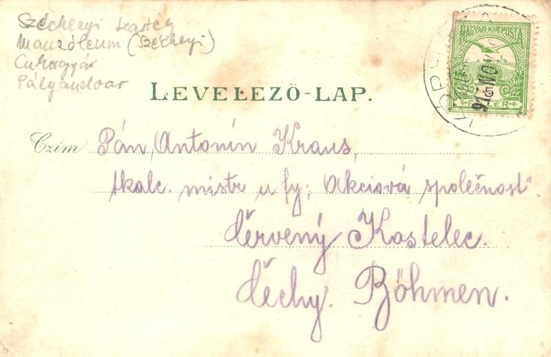 Beschreibung: Nagycenk, Cenk; Gróf Széchenyi Kastély és családi sírbolt, Vasútállomás, Cukorgyár, Hársfa allé, Kummert Lajos; floral, Art Nouveau litho (EK)