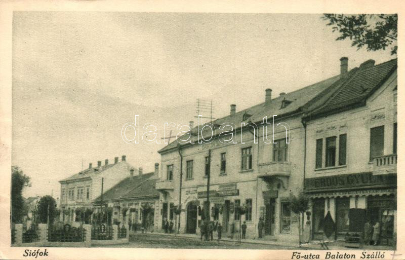 Siófok, Fő utca, Balaton szálló, Erdős Gyula üzlete (EK) https://www.darabanth.com/de/26-Gross-Auktion/26.1/Ansichtskarten/Ungarn~10158/Siofok-Fo-utca-Balaton-szallo-Erdos-Gyula-uzlete-EK~II1484834