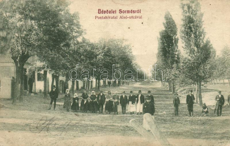 Sormás, Postahivatal az Alsó utcával. Szávits György kiadása (fa) https://www.darabanth.com/de/26-Gross-Auktion/26.1/Ansichtskarten/Ungarn~10158/Sormas-Postahivatal-az-Also-utcaval-Szavits-Gyorgy-kiadasa-fa~II1486633