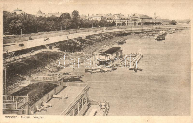 Szeged, Tiszai részlet, fürdőház napozója, állóhajó https://www.darabanth.com/de/26-Gross-Auktion/26.1/Ansichtskarten/Ungarn~10158/Szeged-Tiszai-reszlet-furdohaz-napozoja-allohajo~II1469254
