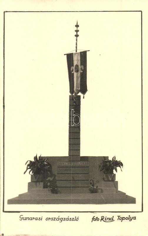 Gunaras, Gunaros; Országzászló. Foto Rind / Hungarian flag, photo https://www.darabanth.com/de/26-Gross-Auktion/26.1/Ansichtskarten/Vojvodina~10164/Gunaras-Gunaros-Orszagzaszlo-Foto-Rind-Hungarian-flag-photo~II1488603
