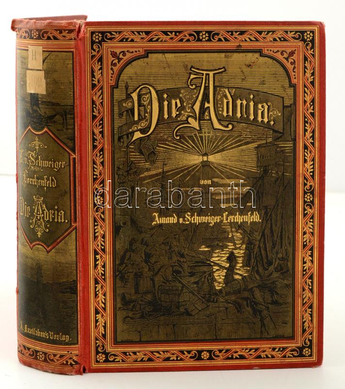 Schweiger-Lerchenfeld, Amand: Die Adria. Land- und Seefahrten im Bereiche des Asriatischen Meeres. Wien - Pest - Leipzig, 1883, A. Hartleben's Verlag. Térképmellékletekkel. Díszes, aranyozott, sérült, kicsit kopott vászonkötésben. / With maps and illustrations, in a slightly damaged cloth binding.