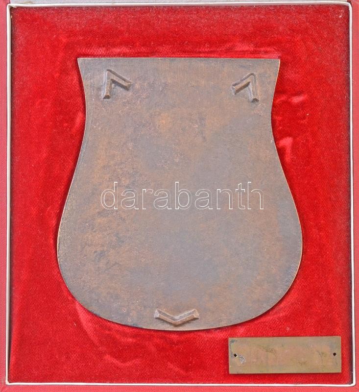 DN "Budafok-Háros" Br pajzs alakú plakett, eredeti dísztokban, mellette kis Br táblával, rajta "MN MÜTEK - Budafok-Háros" (512g/130x155mm) T:1- /