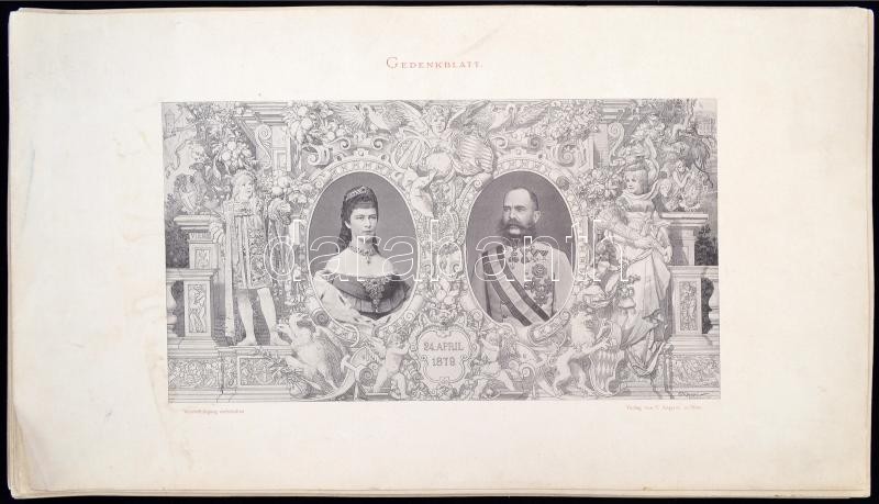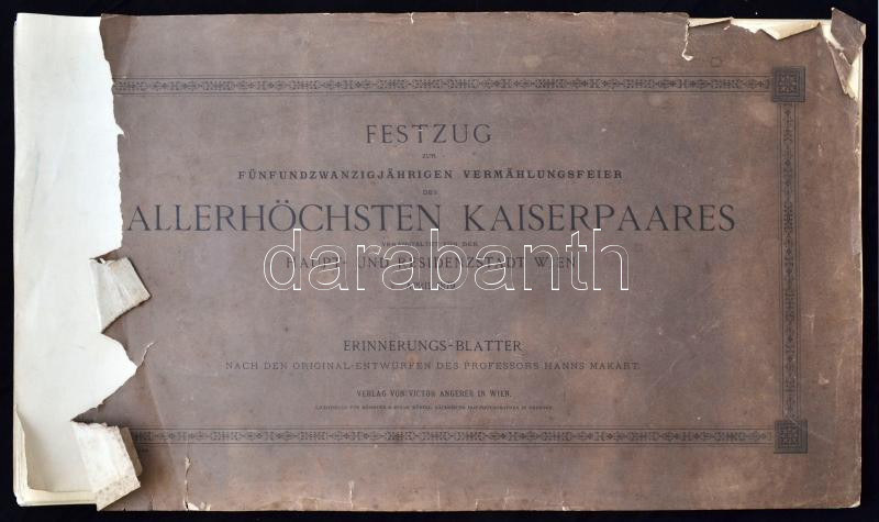 1879 Festzug zur fünfundzwanzigährigen Vermählungsfeier des allerhöchsten Kaiserpaares veranstaltet von der Haupt-und Residenzstadt Wien April 1879. Erinnerungs-Blätter nach den Original-Entwürfen des Professors Hanns Makart. Szakadt fedőborítóval egyébként jó állapotban, 25x45cm